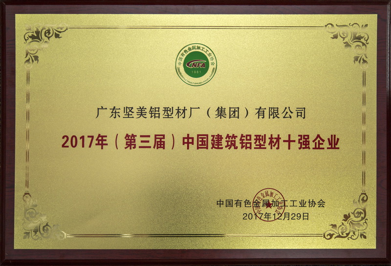 2017年(第三屆)中國建筑鋁型材十強企業(yè)