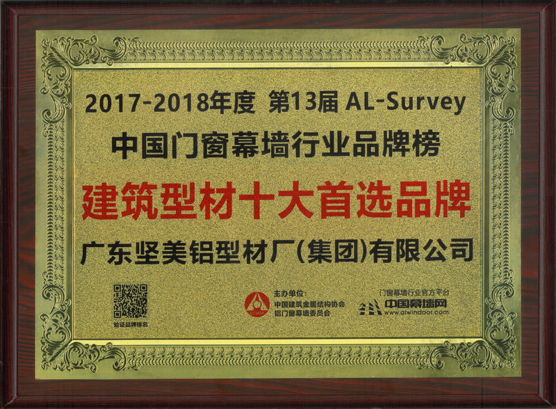 2017-2018第13屆AL-Survey中國門窗幕墻行業(yè)品牌榜門窗十大首選品牌